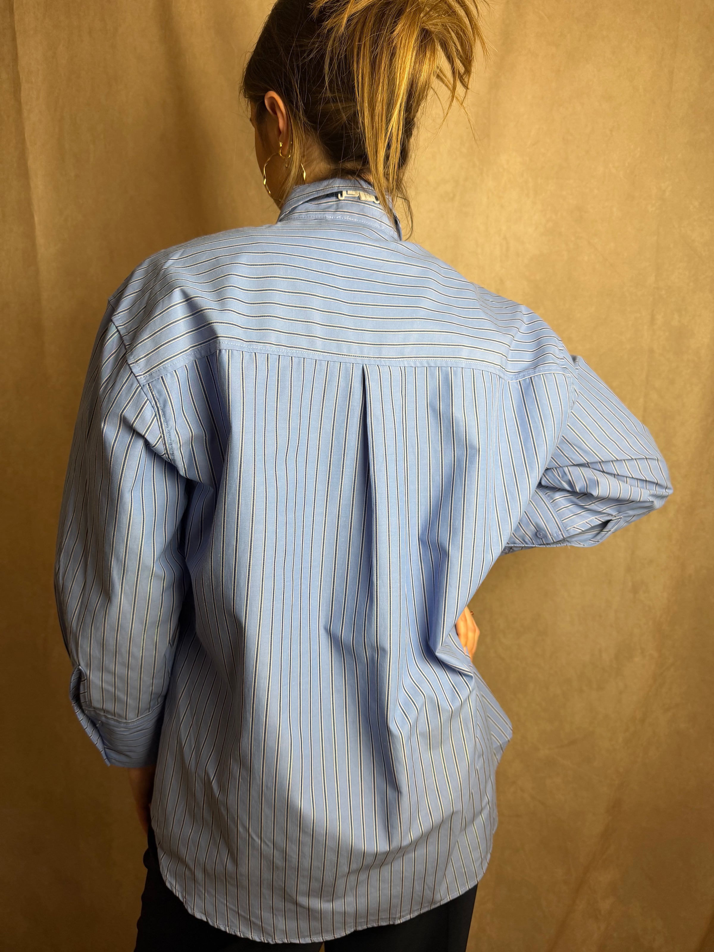 Cette chemise femme rayée bleue avec cravate assortie est une pièce ultra tendance de la nouvelle collection.