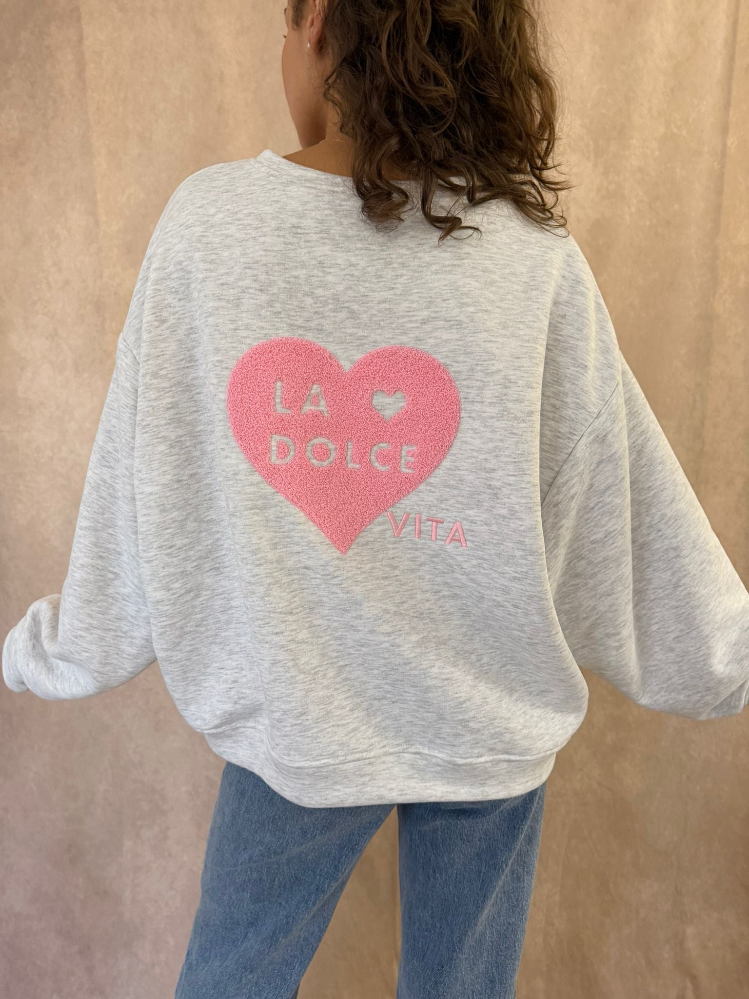 Sweat gris chiné “La Dolce Vita” – Coupe oversize